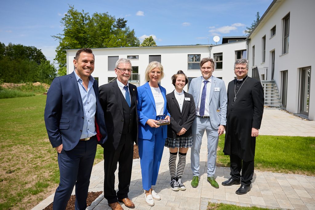Bei der Großveranstaltung am 19.05.23 trafen sich rund um die bayerische Familienministerin Ulrike Scharf Vertreter aus Politik und Wirtschaft, der kooperierenden Fachbehörden, der Kirchen und Schulen zur Einweihung und Segnung der vier heilpädagogischen Wohngruppen.